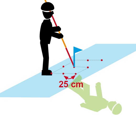Commencer par sonder à l’endroit précis marqué par le DVA. Si on n’a pas de touche, sonder en carré autour de ce point tous les cm.